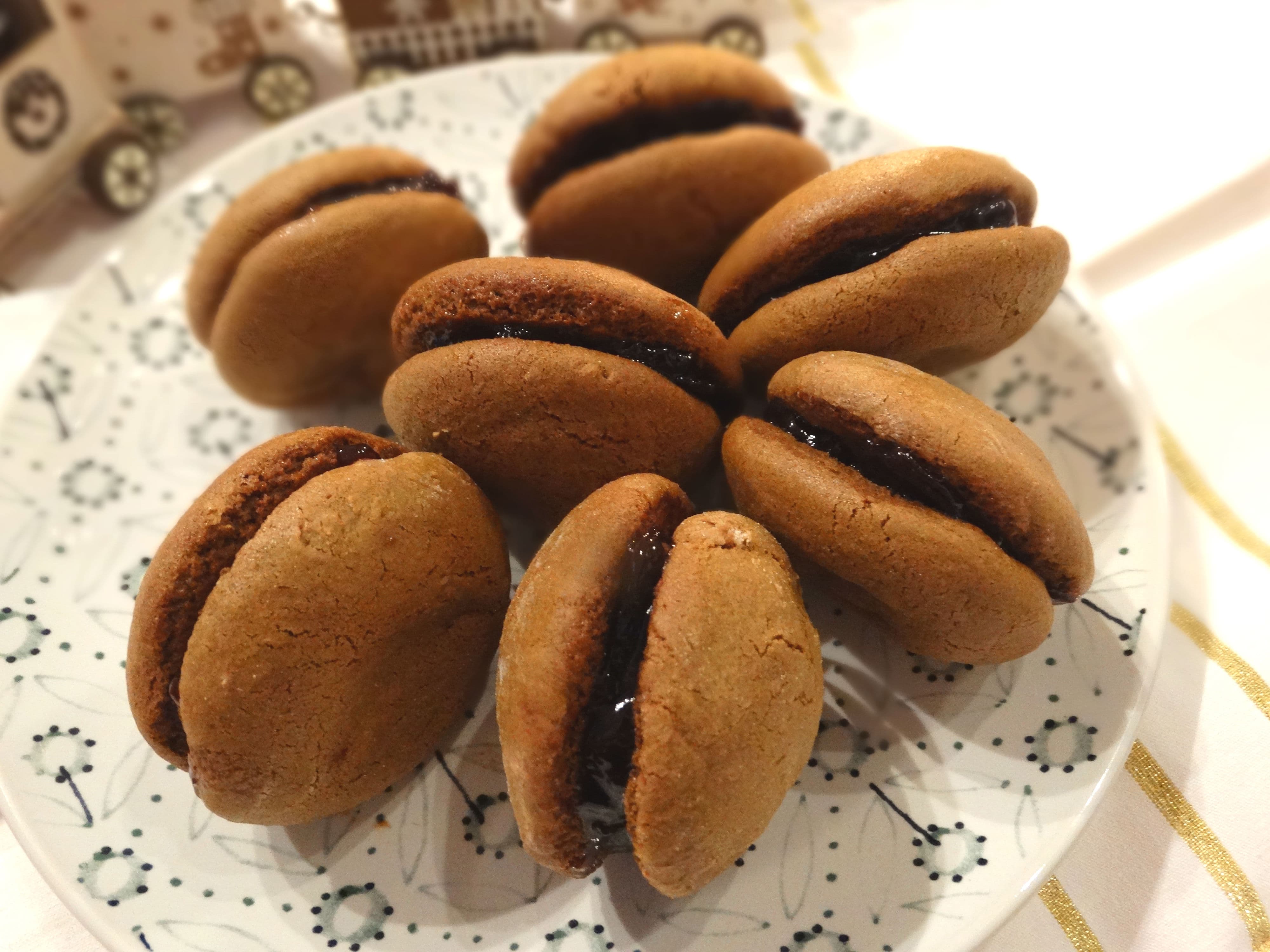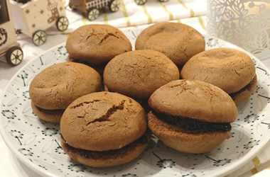 Печете 7-8 мунити. Извадете от фурната и оставете да изстинат. Слепете ги със сладко от сливи или каквото предпочитате. |