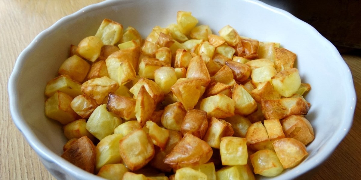 Лесни и много ефектни картофени крутони - любими особено на малките деца. Аз ги приготвям в еърфрайър без никаква мазнина и дори без сол. Подходящи са за допълнение към крем супа или салата.